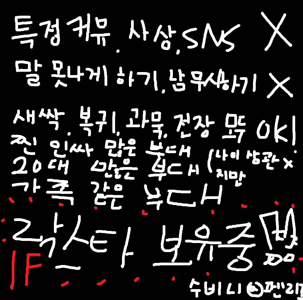 | 21554 | [톤] <칠흑> 부대에서 왁자지껄 소통하실 부대원 구합니당~ 하하호호 (0) New Picture Nj | 26-04-01 | 74 | 0 |